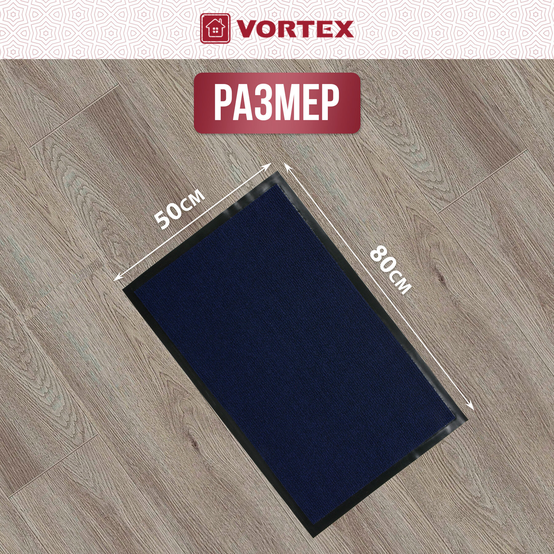 Купить Коврик влаговпитывающий, ребристый в прихожую/противоскользящий/от грязи/снега “TRIP” 50*80 см "VORTEX", синий