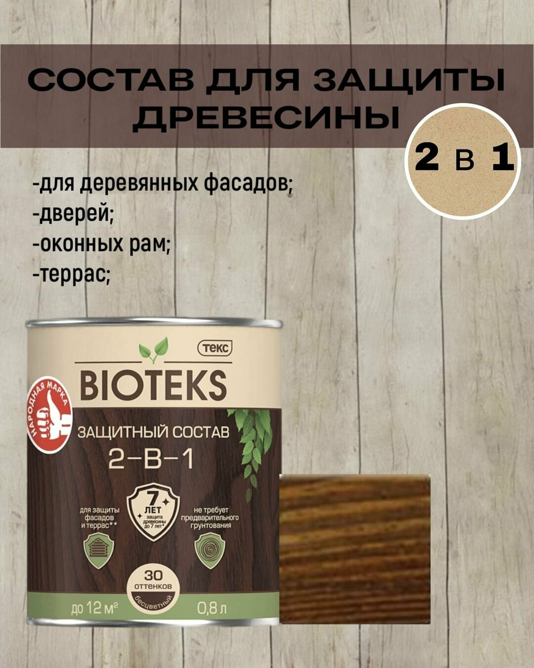 Защитный Состав 2-в-1 Текс Bioteks 0.8л Сосна, не Требует Предварительного Грунтования для Наружных Работ / Текс Биотекс.
