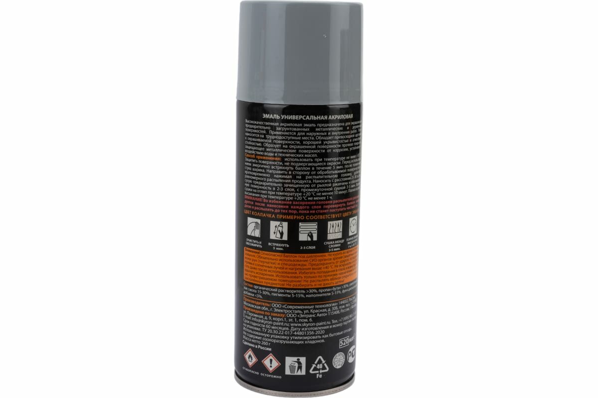 Купить Эмаль Универсальная Акриловая Серая (Ral 7040) Аэрозоль 520 Мл Skyron Sr-17040 SKYRONSR17040