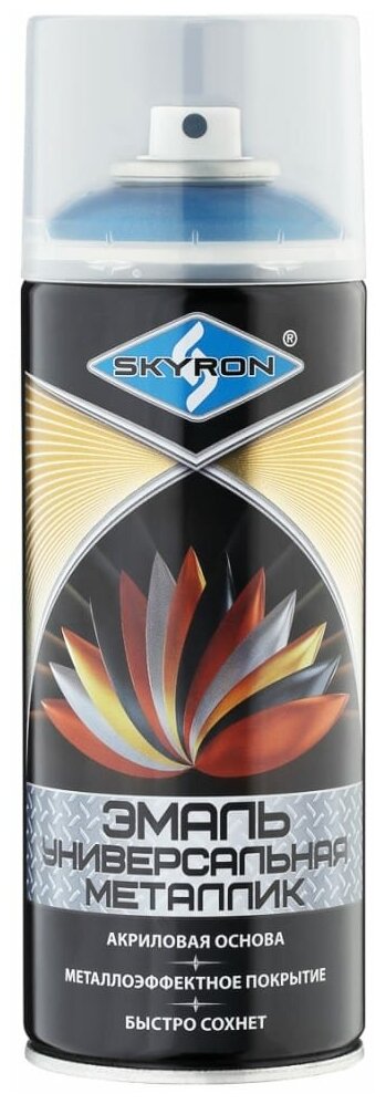 Эмаль универсальная акриловая SKYRON металлик цвет:Голубой. Аэрозоль 520мл (SR-19130)