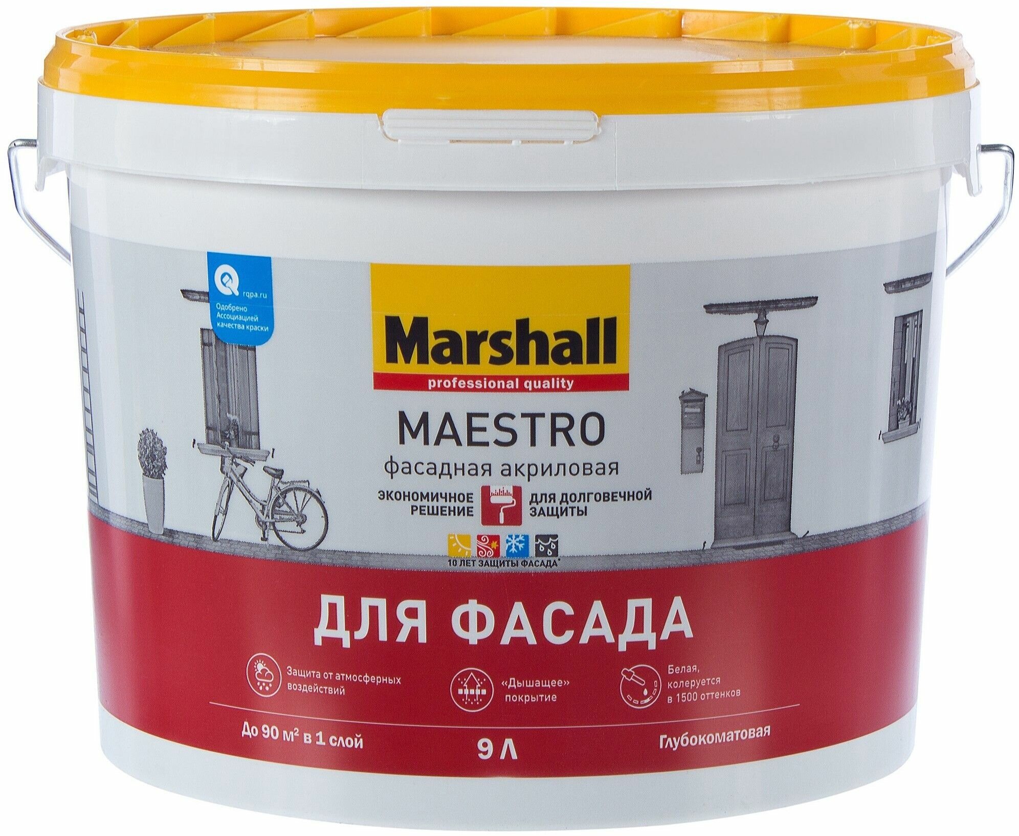 Краска акриловая Marshall Maestro для фасада влагостойкая глубокоматовая белый 9 л