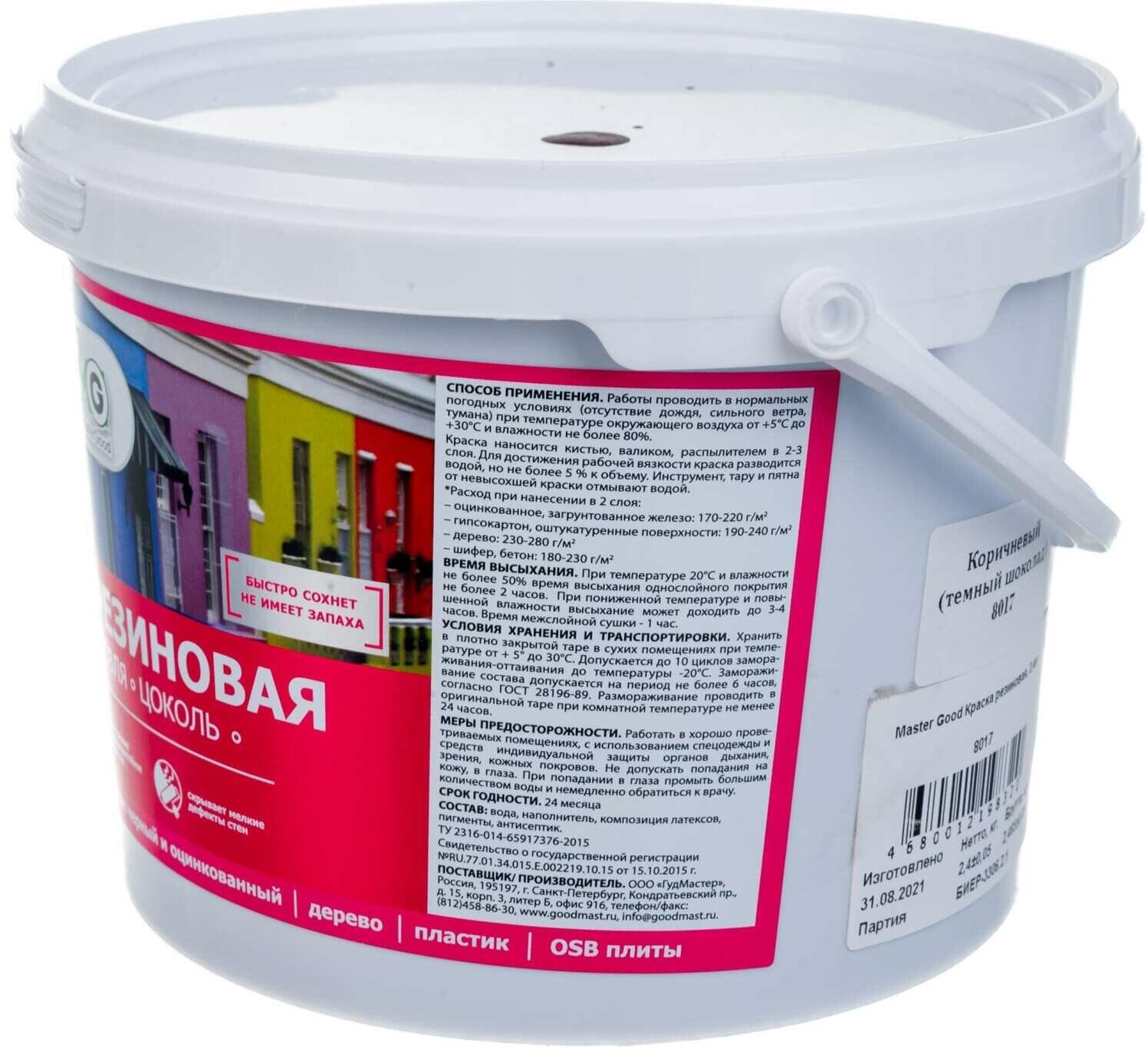 MasterGood Краска резиновая моющаяся акриловая для помещений с повышенной влажностью Темный шоколад (2,4 кг) RAL 8017