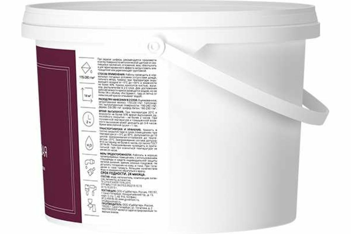 MasterGood Краска резиновая моющаяся акриловая для помещений с повышенной влажностью Красное вино, (RAL 3005) (2,4 кг)