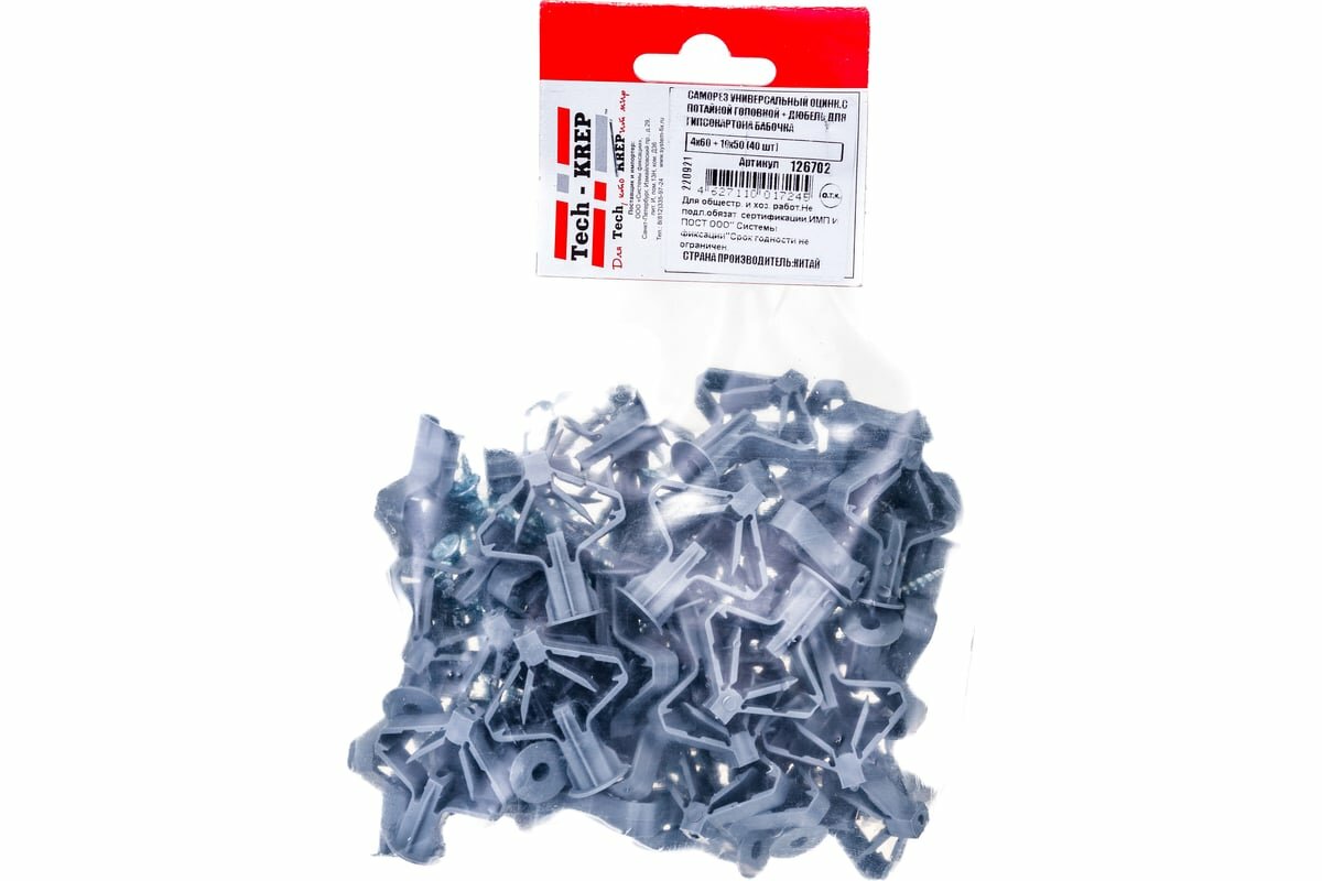 Tech-KREP Дюбель для гипсокартона "бабочка" 10х50 с сам. 4х60 (уп.40шт) пакет Tech-Krep 126702