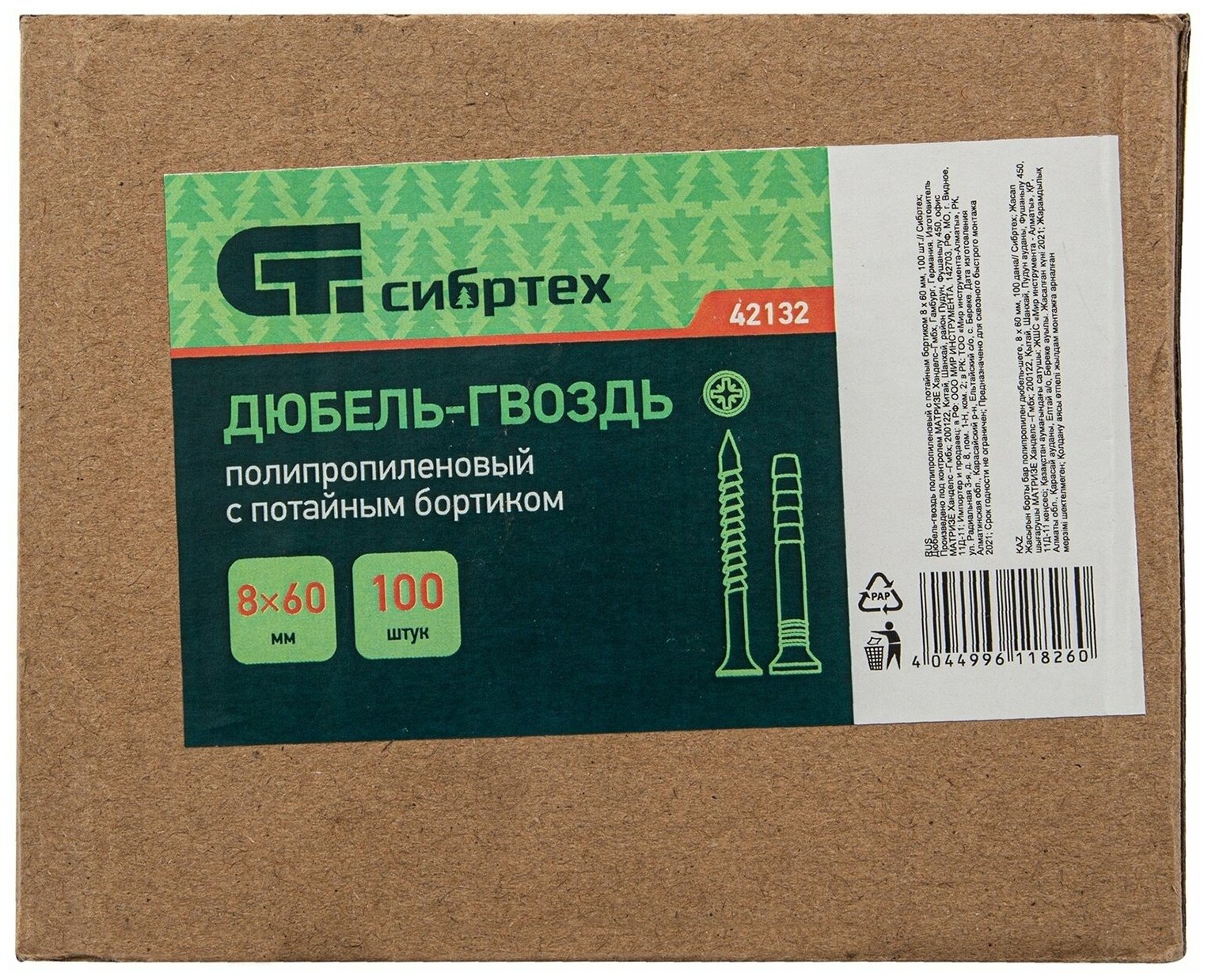 Дюбель-гвоздь СИБРТЕХ 42132, 8х60мм, 100шт