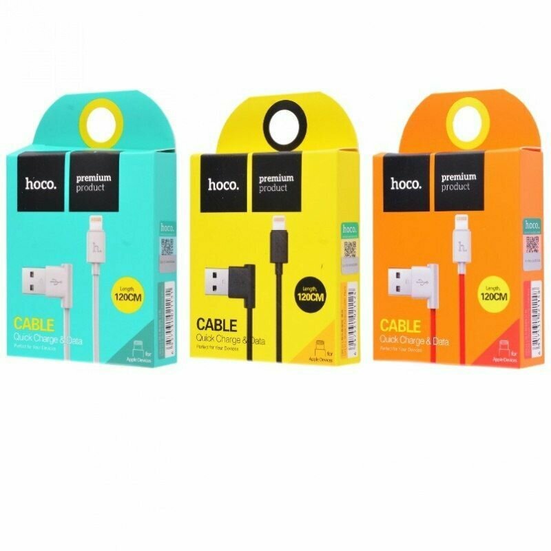 Кабель USB HOCO UPL11 L Shape, USB - Lightning, 2.1А, 1.2 м, черный, L-образный