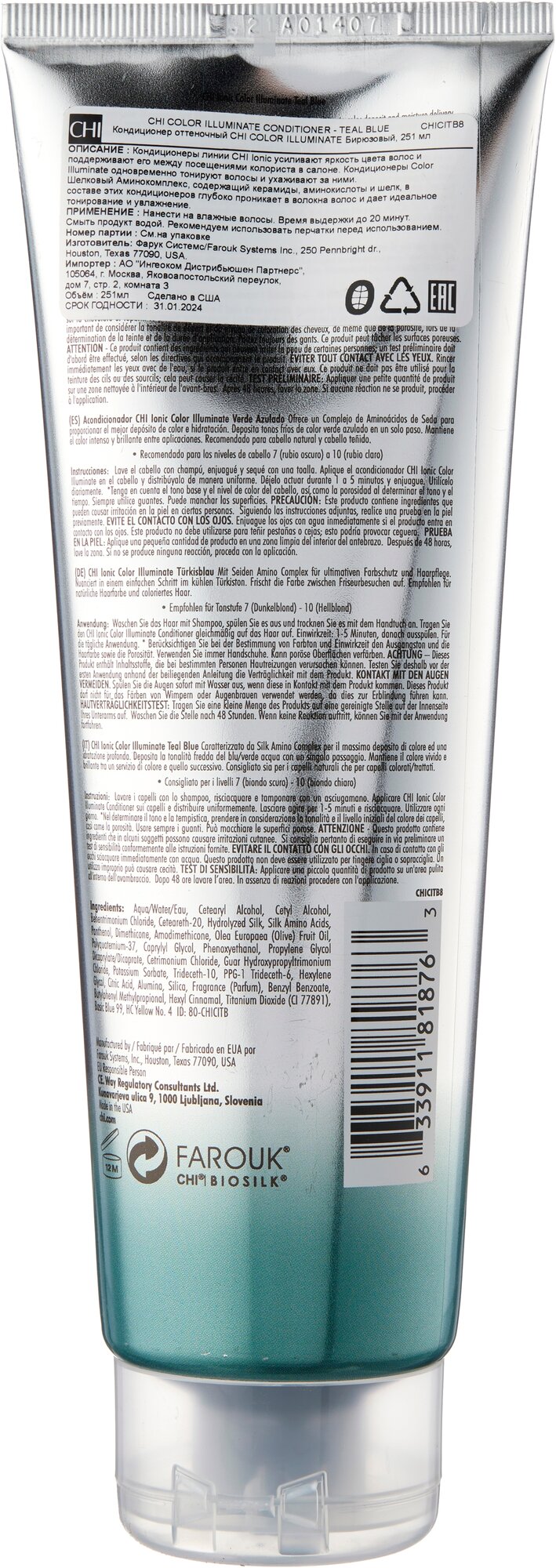 CHICITB8 Кондиционер оттеночный CHI IONIC COLOR ILLUMINATE Бирюзовый, 251 мл