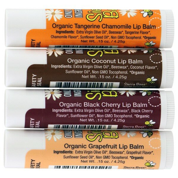 Sierra Bees, набор органических бальзамов для губ, 4 штуки, вес: 4,25 г каждый