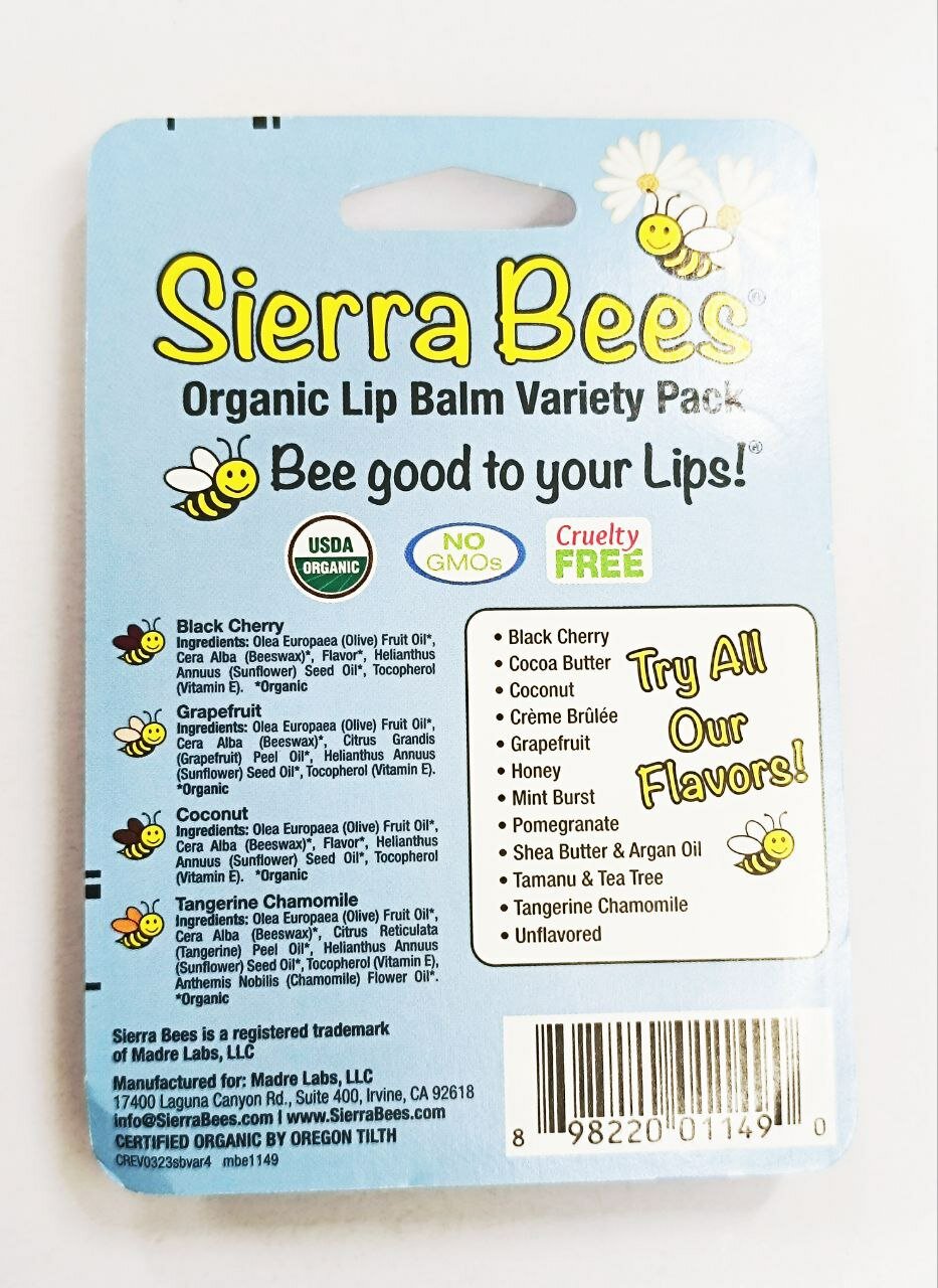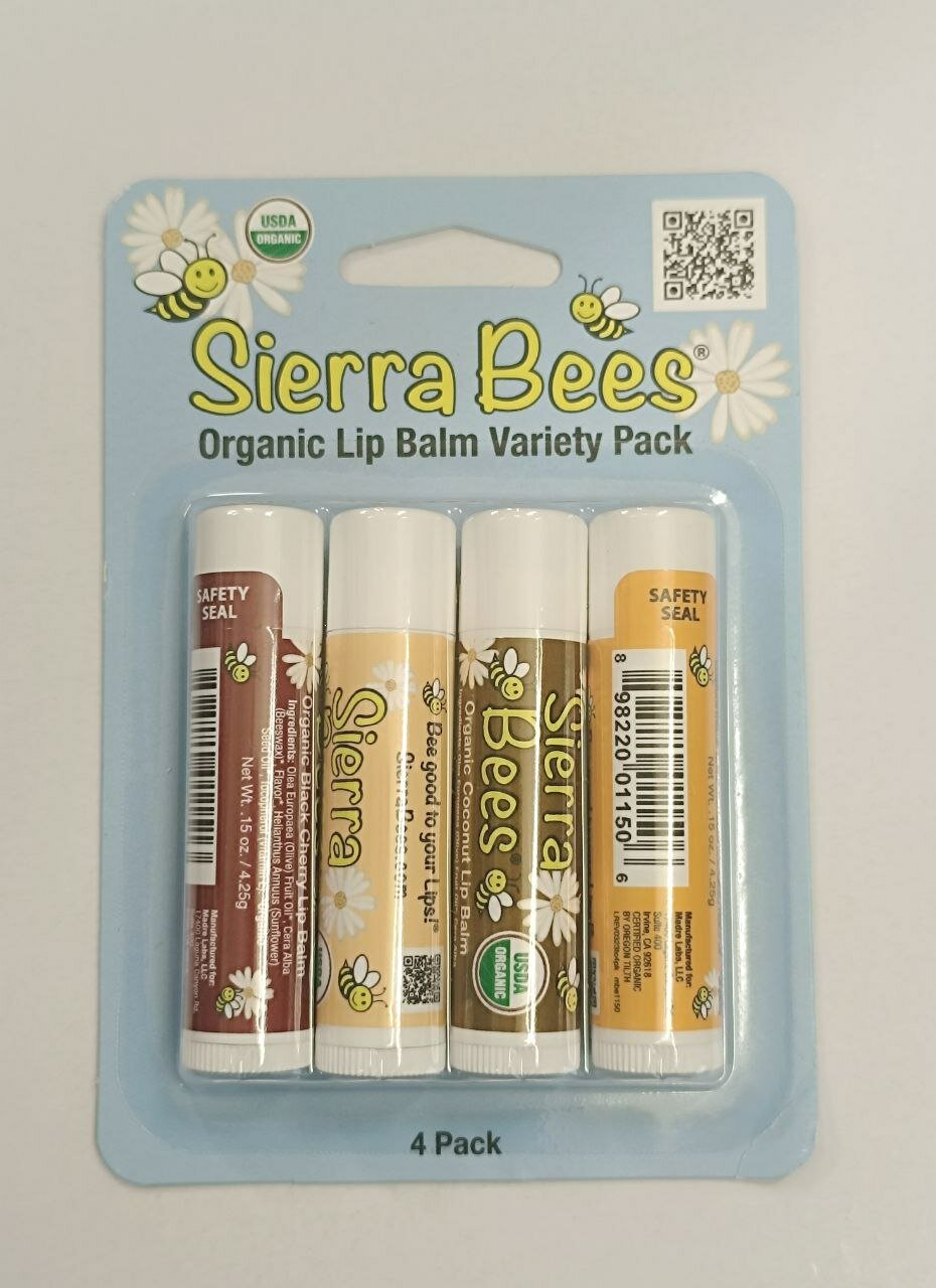 Sierra Bees Набор органических бальзамов для губ, 4 шт. по 4,25 гр каждый (Ассорти)