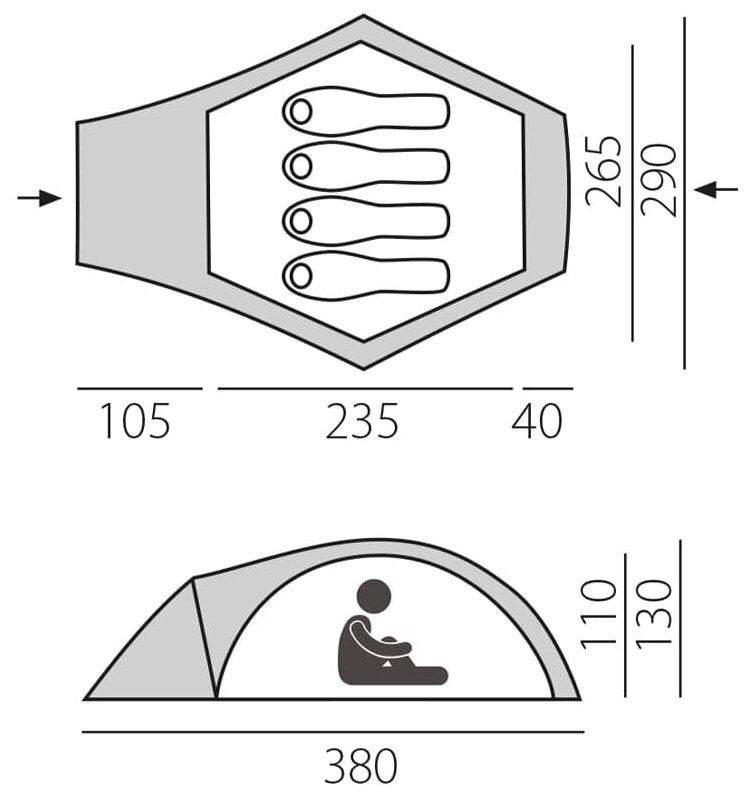 | Ширина внутренней палатки | 265 см |