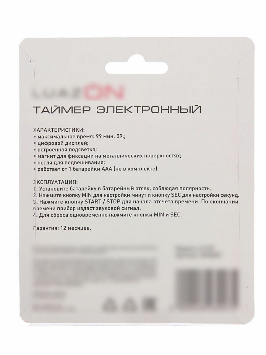 LuazON Home Таймер электронный Luazon Lc107, работает от 1 ААА не в комплекте, черный