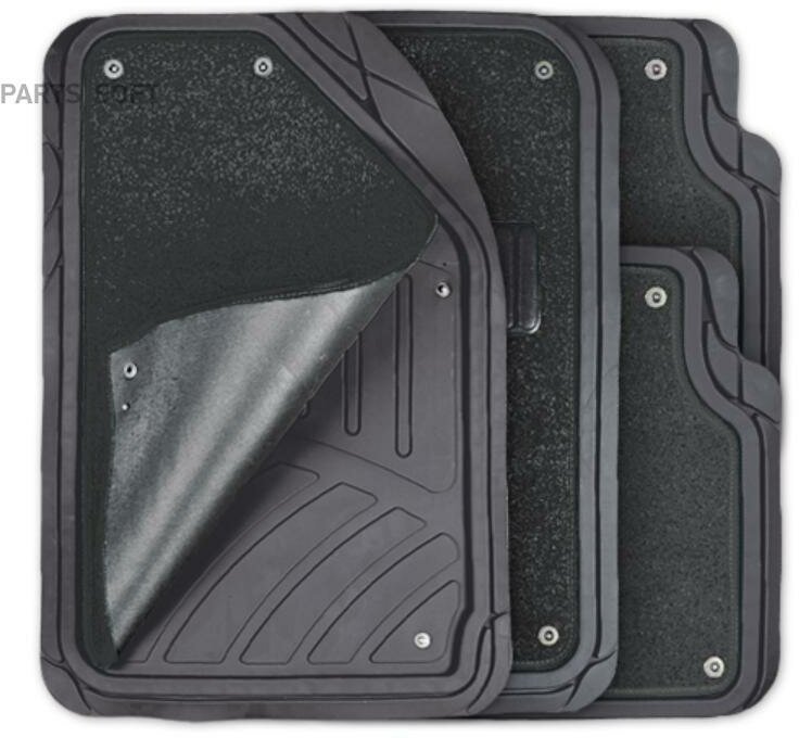 Коврики авт. универс. резина+ворс отстег.,зад.раздельн. fcs 2, l, 4пр, черный (72*50, 50*55)1/4