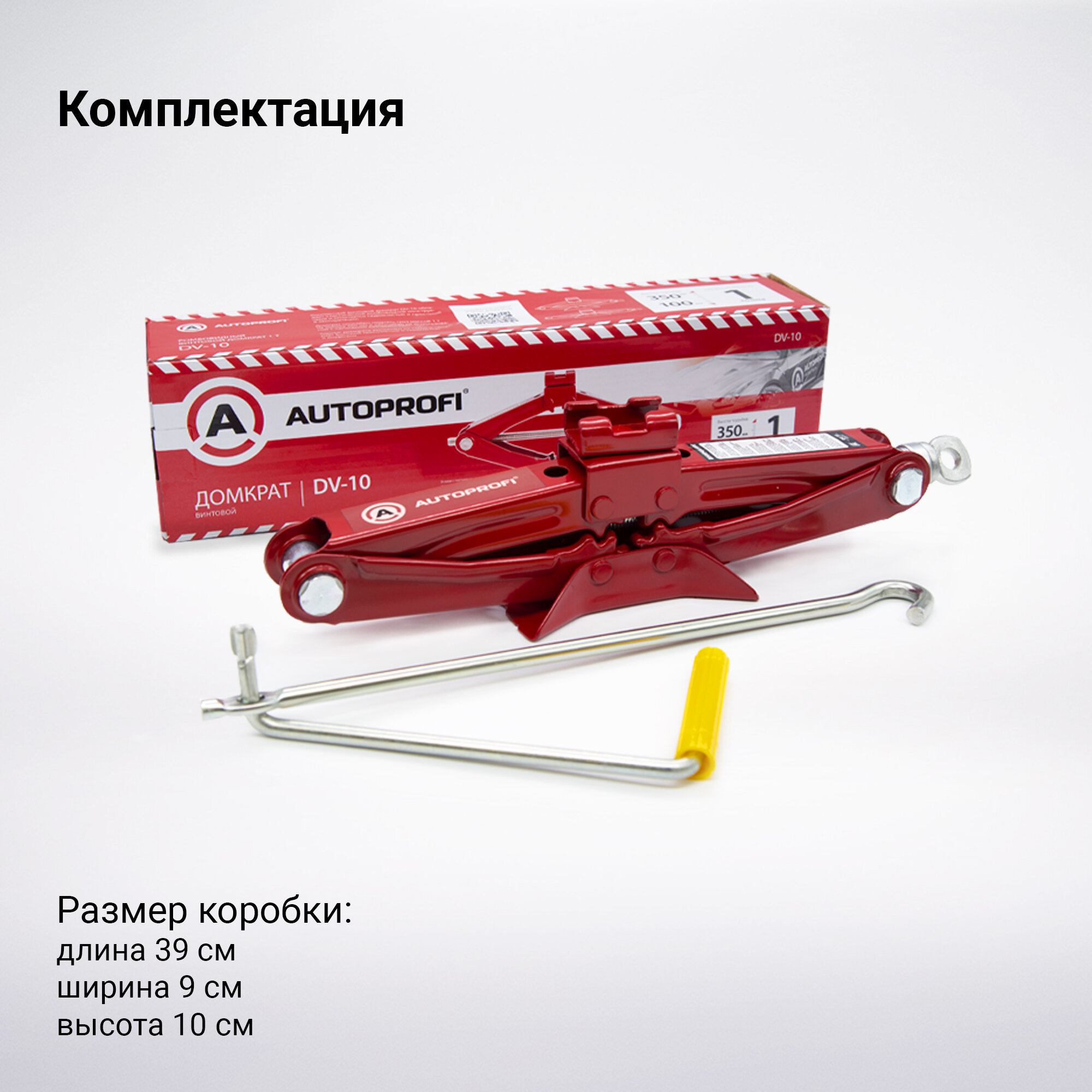 Домкрат ромбический AUTOPROFI DV-10, механический, винтовой, 1 тонна., высота подъёма 100 - 350 мм.