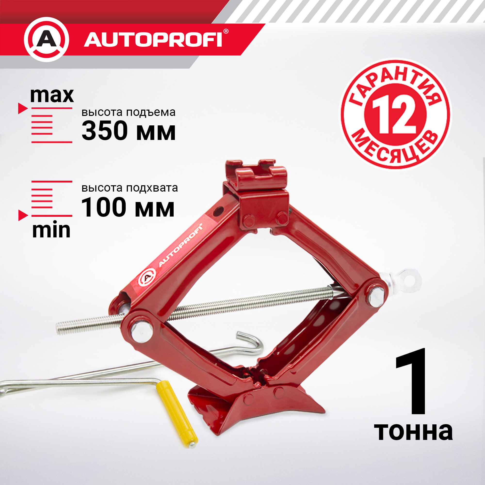 Домкрат механический, ромбический, винтовой 1т 100мм-350мм (AUTOPROFI)