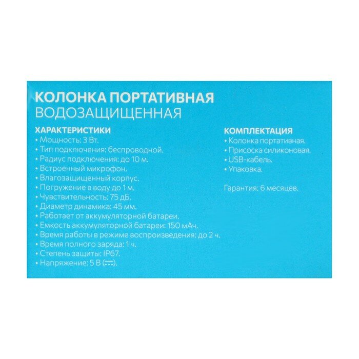 СохранитьПортативная колонка LuazON LPCK-06, 150 мАч, водостойкая, на присоске, синяя интересное:
