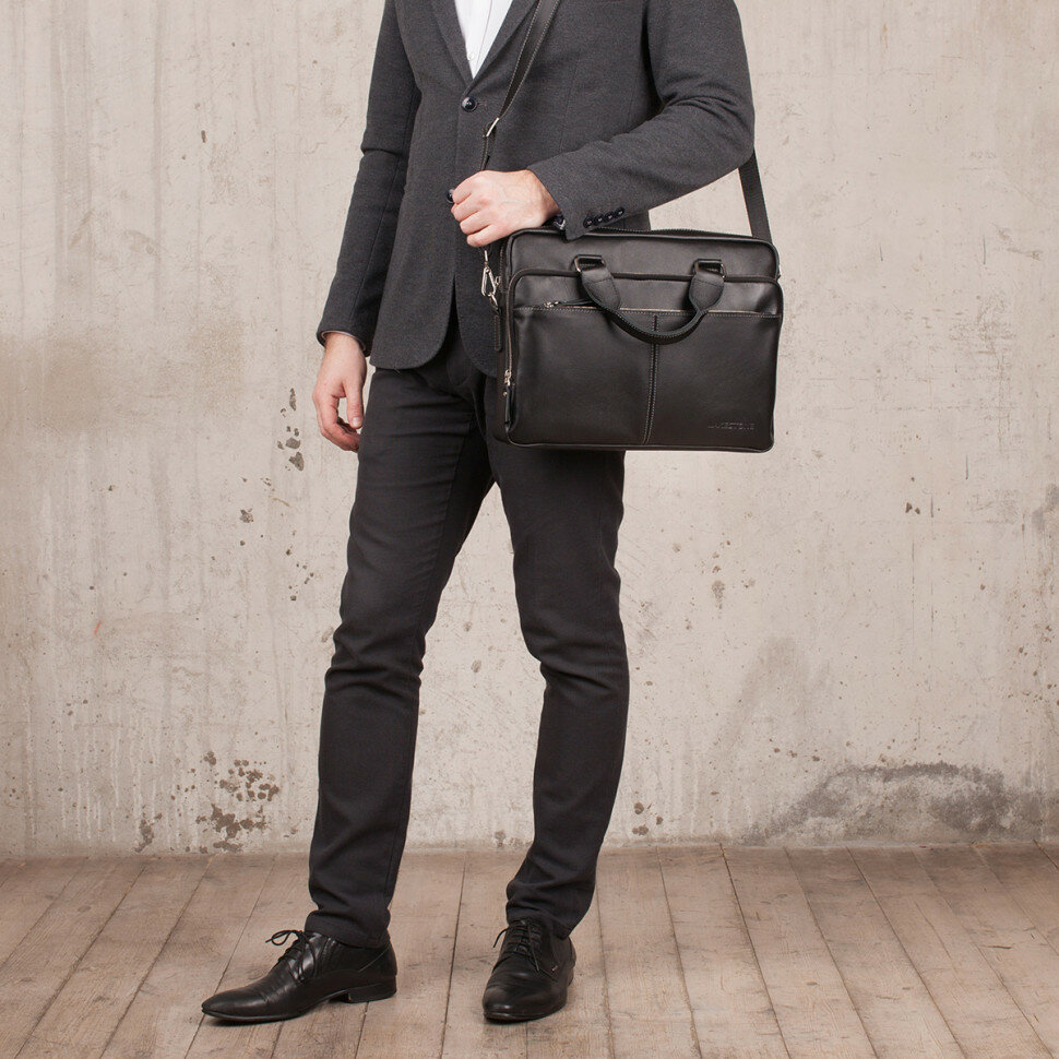 Кожаная деловая сумка для ноутбука Glenroy Black