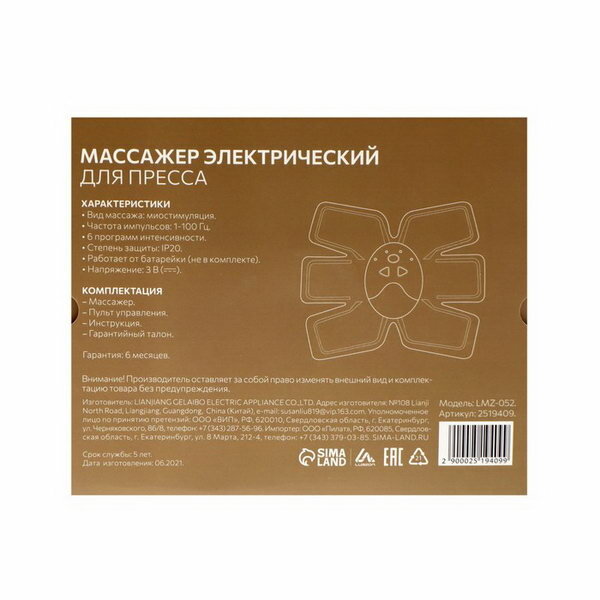 Luazon Home Массажёр для пресса LuazON LMZ-052, 6 режимов, 2хААА (не в комплекте), чёрный интересное: