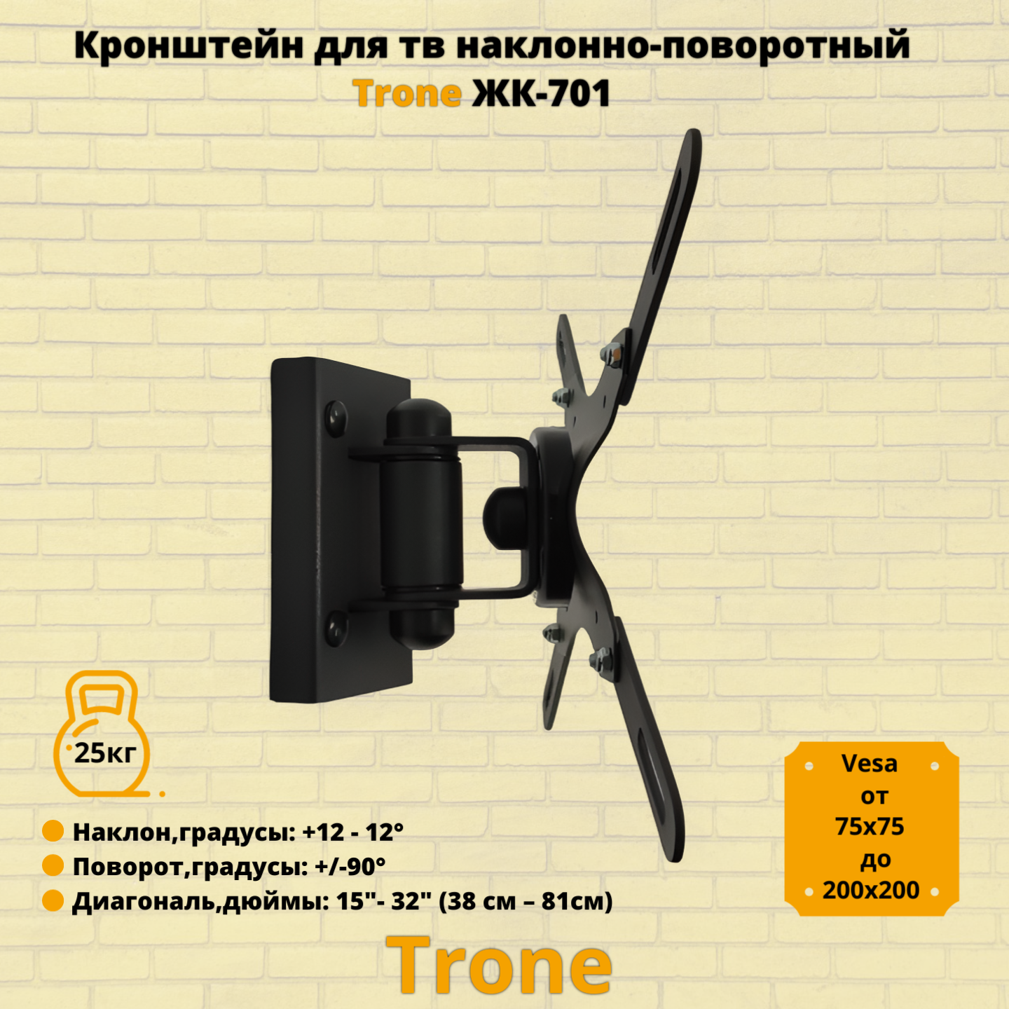 Кронштейн для телевизора на стену наклонно-поворотный с диагональю 15"-32" Trone ЖК-701,черный