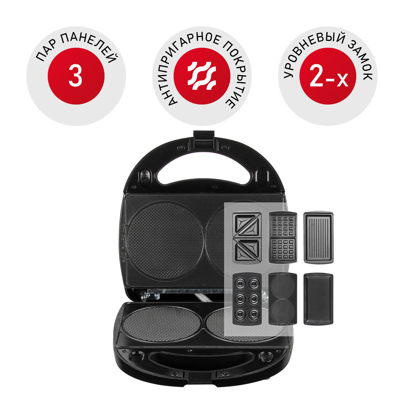 Kelli Мультипекарь, мультипекарь вафельница, мультипекарь гриль, 1800Вт, антипригарное покрытие, сменные панели, черный