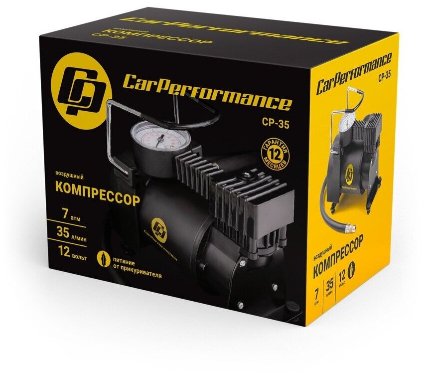 Компрессор воздушный CAR PERFORMANCE CP-35, 35 л./мин., 12V/13А, 160W, 7 Атм., шланг 0,6 м., КП 2,8 м., питание от прикуривателя.
