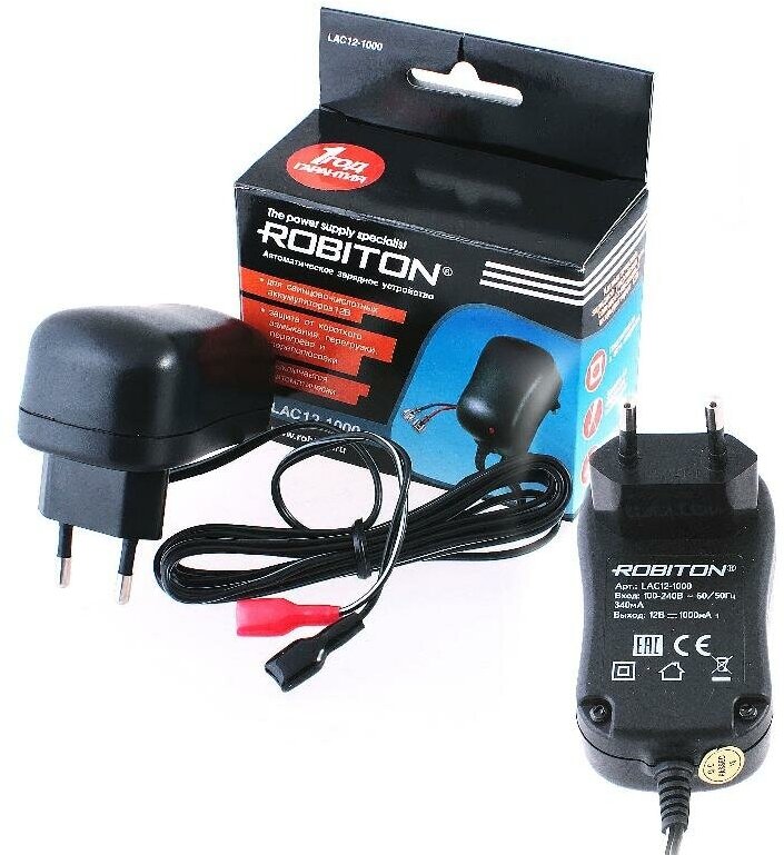 Зарядное устройство для свинцово-кислотных АКБ 12В ток заряда до 1000мА для батарей небольшой емкостью на напряжение 12В - LAC12-1000/II BL1 (Robiton) (код заказа 14681 )