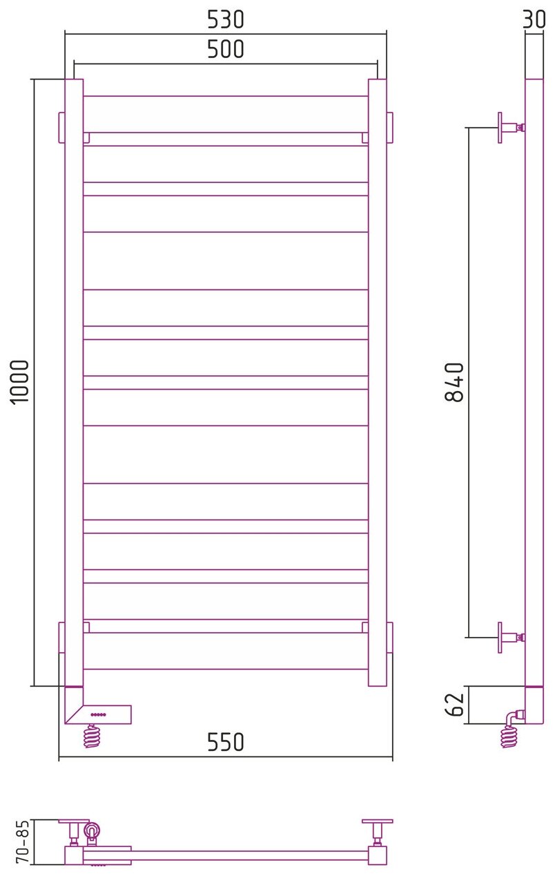 Электрический полотенцесушитель Grois Alias GR-004 500х800 П11 ПТЭН