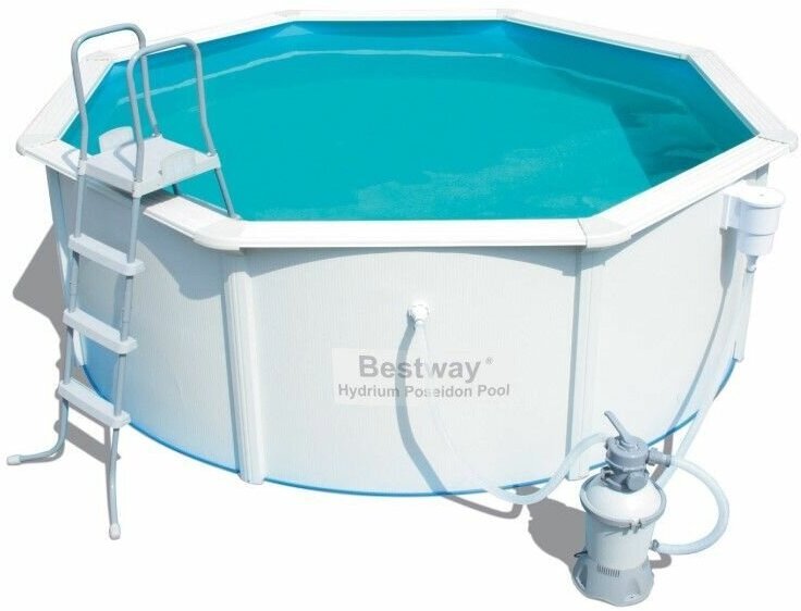 Стальной бассейн Bestway Hydrium Pool Set 460х120 см + песочный ф/насос 5678 л/ч, лестница, тент, подстилка (56384 BW)