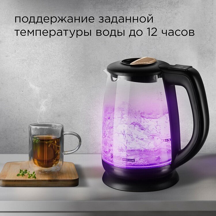 Чайник стильный, современный, прекрасно вписался в интерьер кухни. Управлять им можно как с помощью кнопок на корпусе, так и через приложение Ready for Sky на смартфоне. Очень удобно, что можно включить чайник дистанционно, например, по пути домой с работы. К тому же, в приложении есть много интересных функций. Можно выбрать оптимальную для себя температуру, чтобы напиток заварился, а ты не обжёгся. Есть в том числе возможность оставить чайник на поддержании тепла. Объем чайника 1,7 литра воды и нагрревается она достаточно быстро. Чайник предусматривает и фильтр от накипи. Поэтому вода приятна не только по температуре, но и по качеству, точнее по отсутствию лишних примесей в кружке. В общем, я очень доволен своей покупкой. Чайник надёжный, функциональный и стильный. Отличное соотношение цены и качества. |