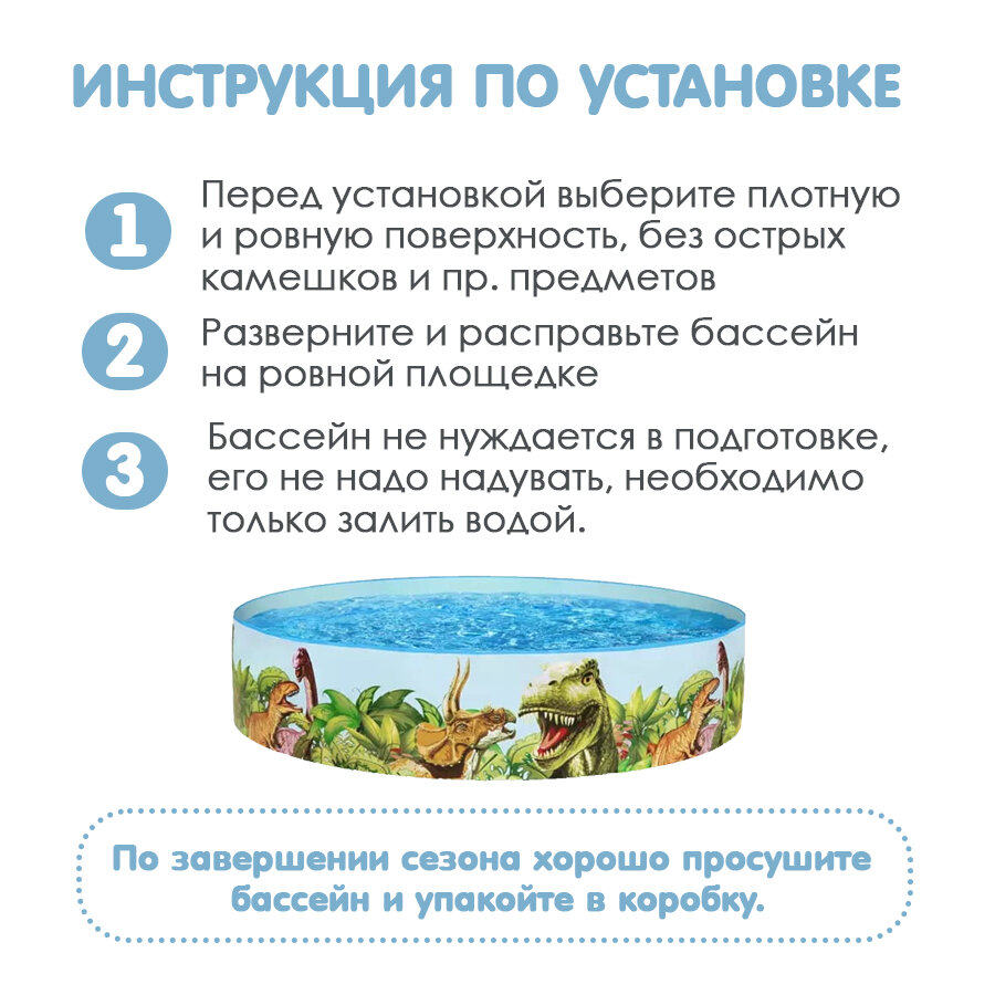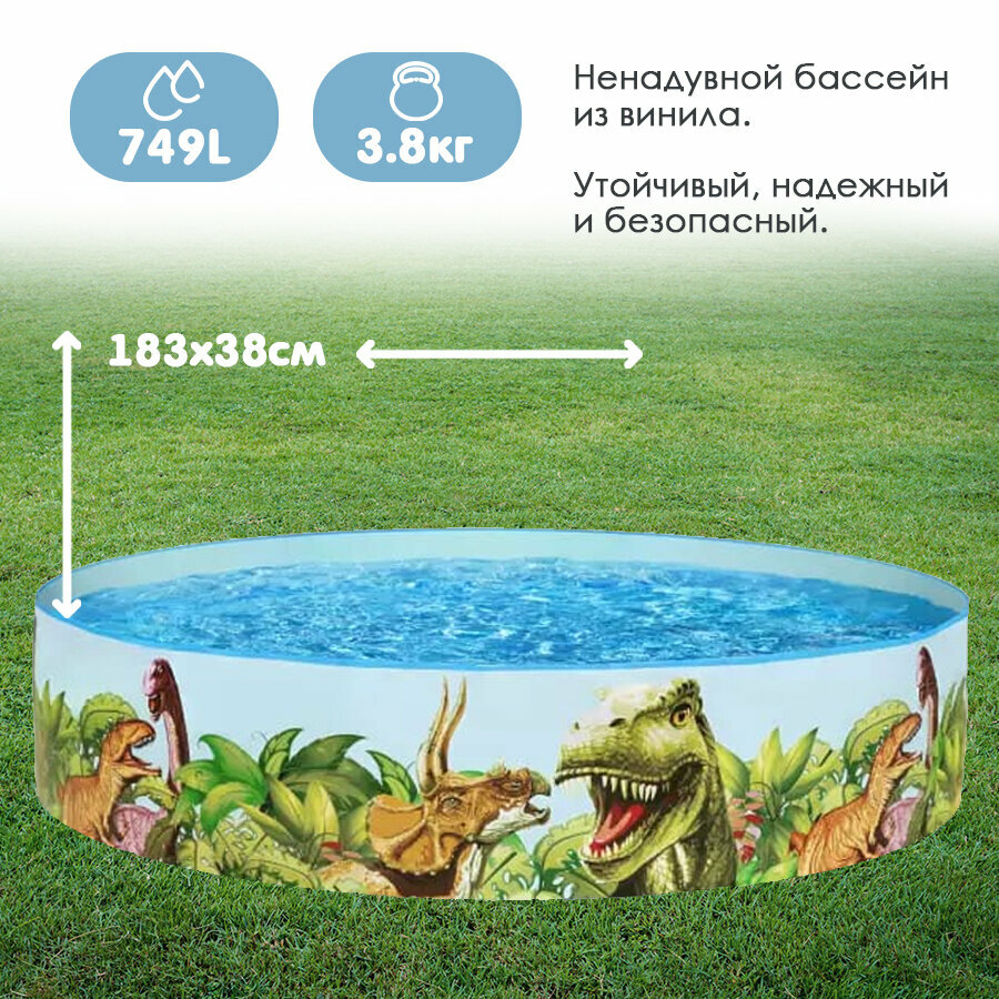 Бассейн "Динозавры", жёсткий борт, 183 x 38 см, от 2 лет, 55022