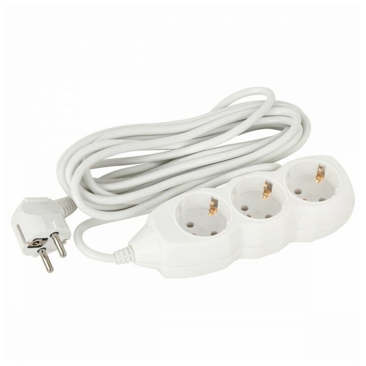 Удлинитель сетевой SONNEN U-135G, 3 розетки, c заземлением, 10 А, 5 м, белый, 511433