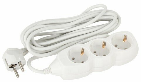 Удлинитель сетевой Sonnen U-135G, 3 розетки, c заземлением, 10 А, 5 м, белый (511433)