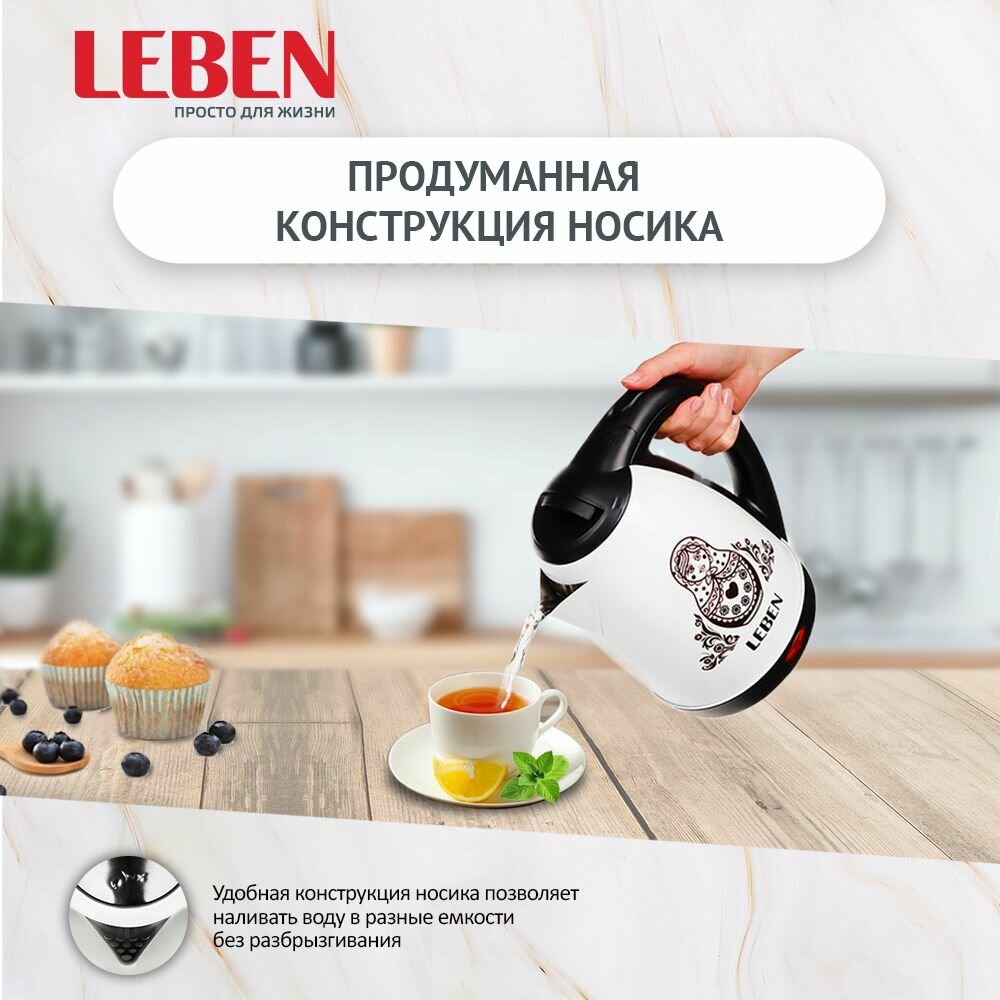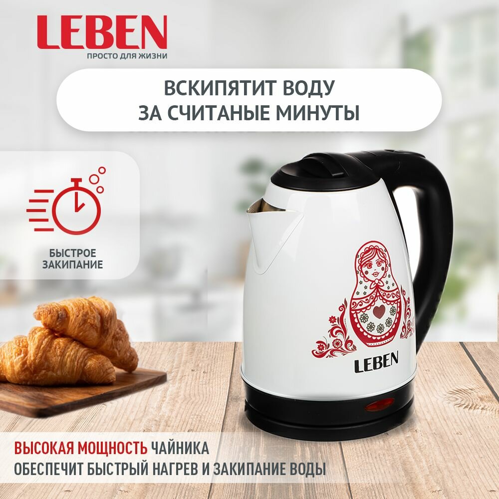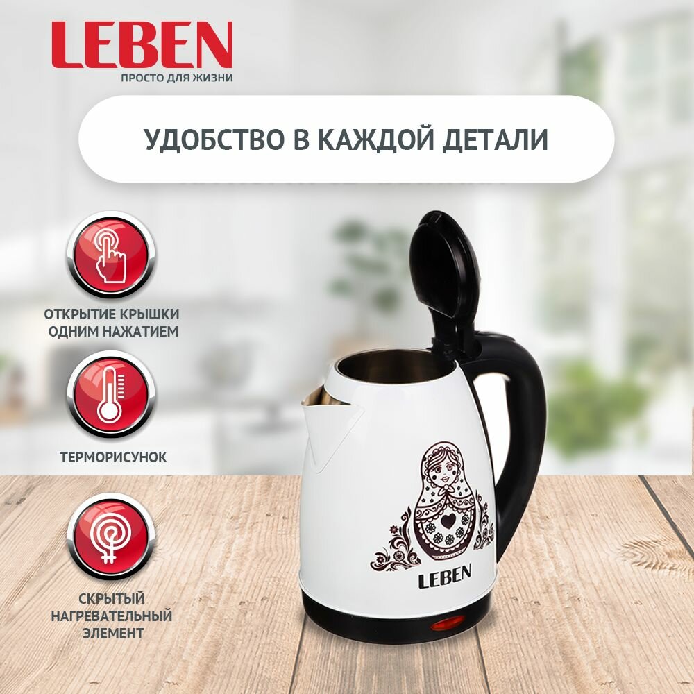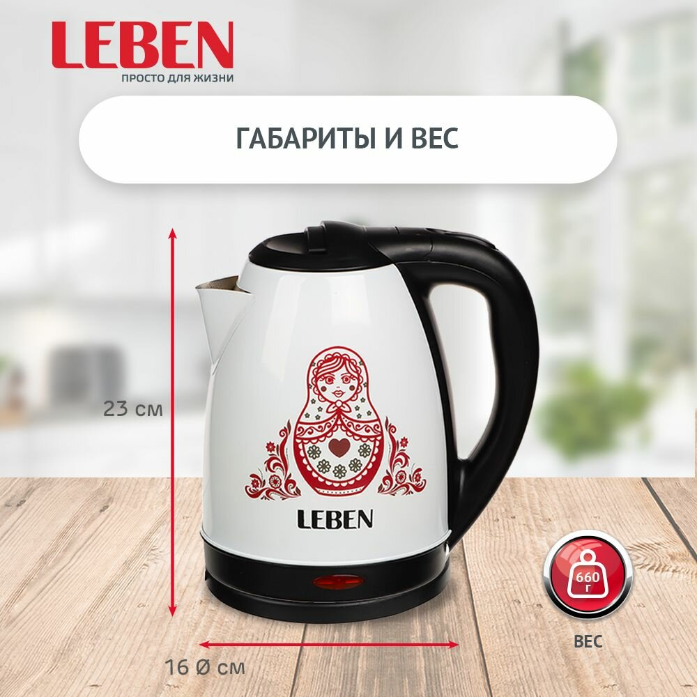 Купить LEBEN Чайник электрический 1,8л, 1500Вт, нерж. сталь, терморисунок матрешка