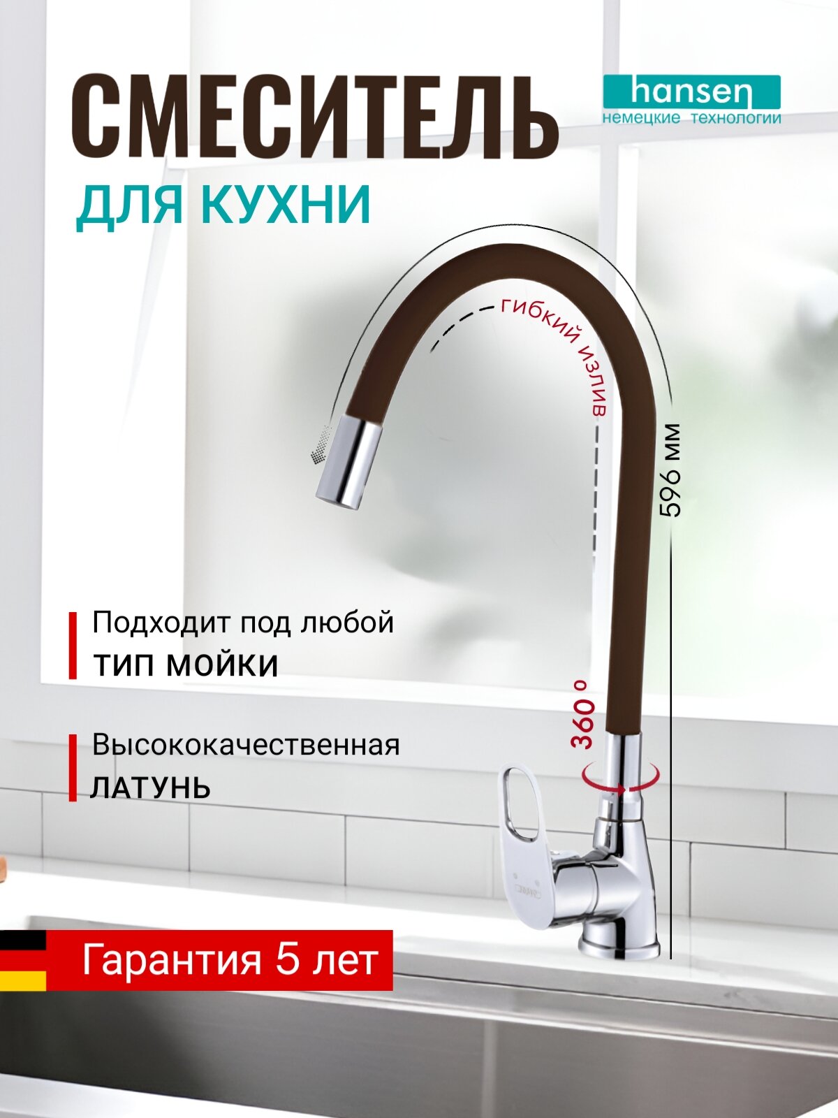 Смеситель для кухни с гибким изливом HANSEN H59004U Хром/Коричневый