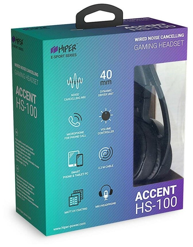 Купить Гарнитура игровая HIPER HS-100 Accent, для компьютера и игровых консолей, накладные, черный