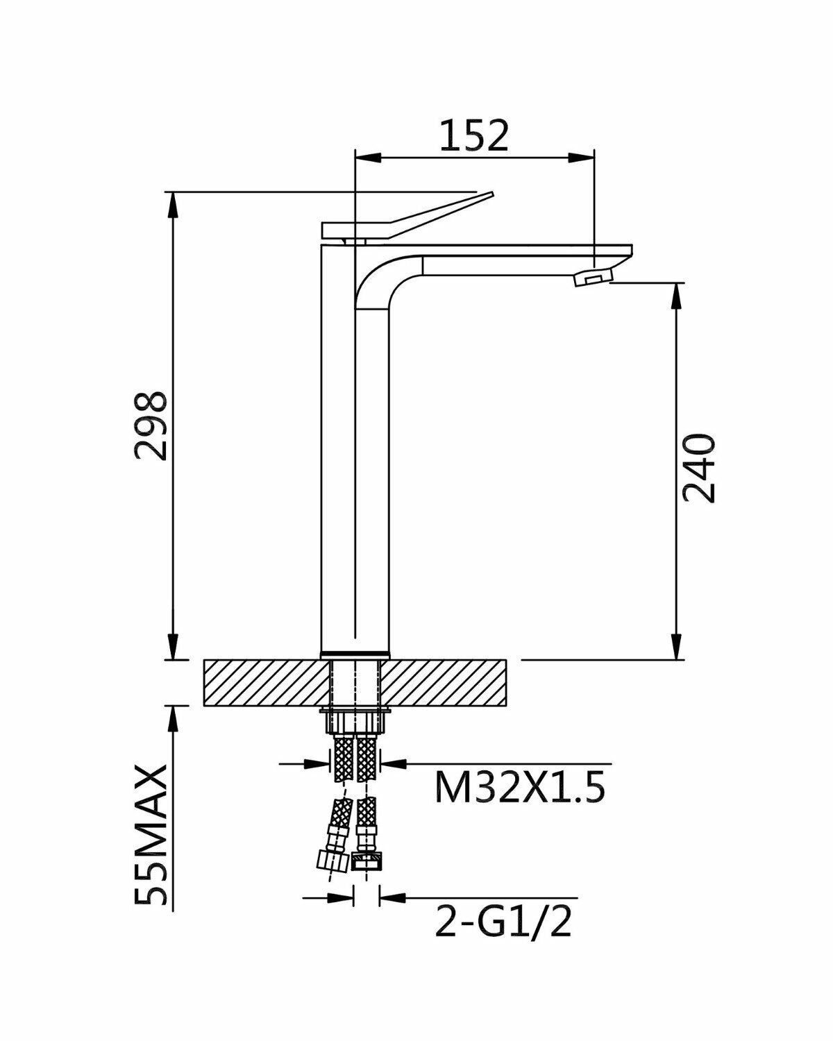 | Излив | длина 155 мм, высота 240 мм |
