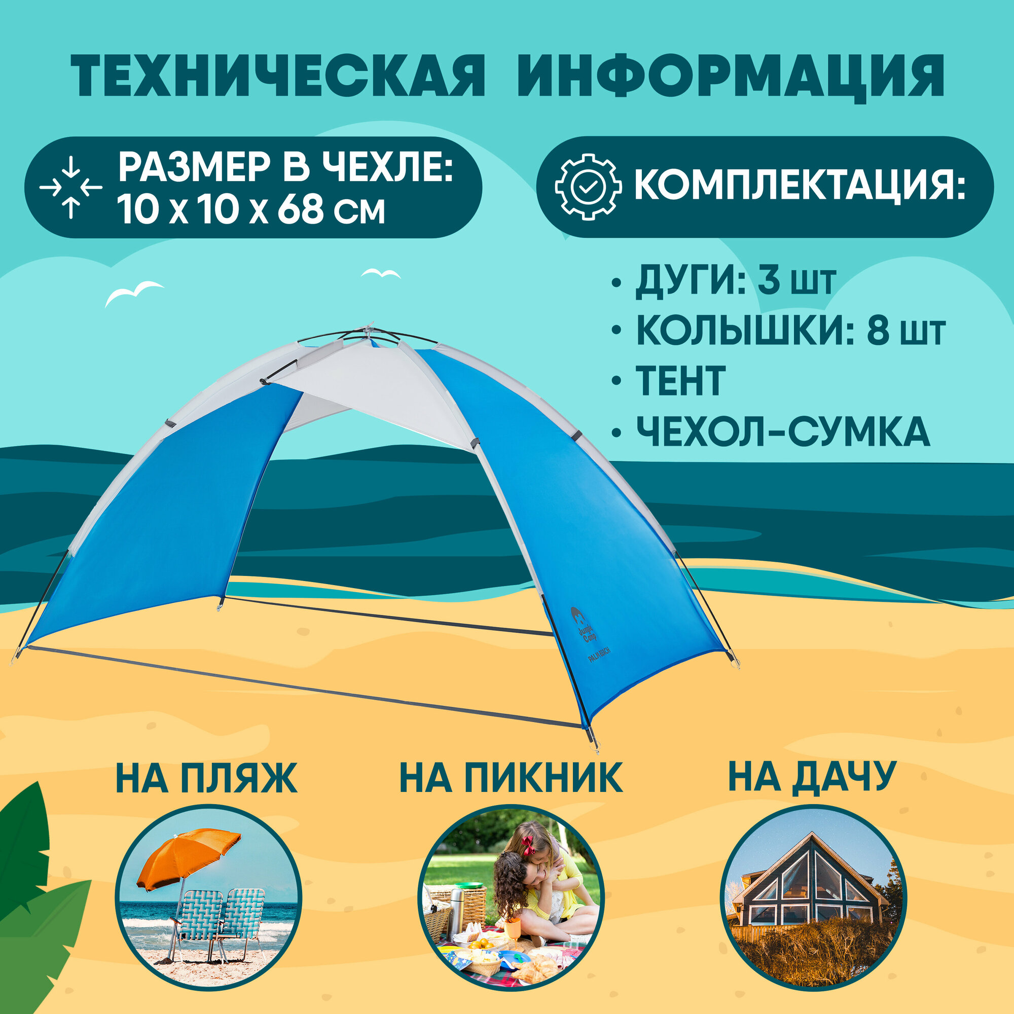 Палатка пляжная Jungle Camp Palm Beach (70875)