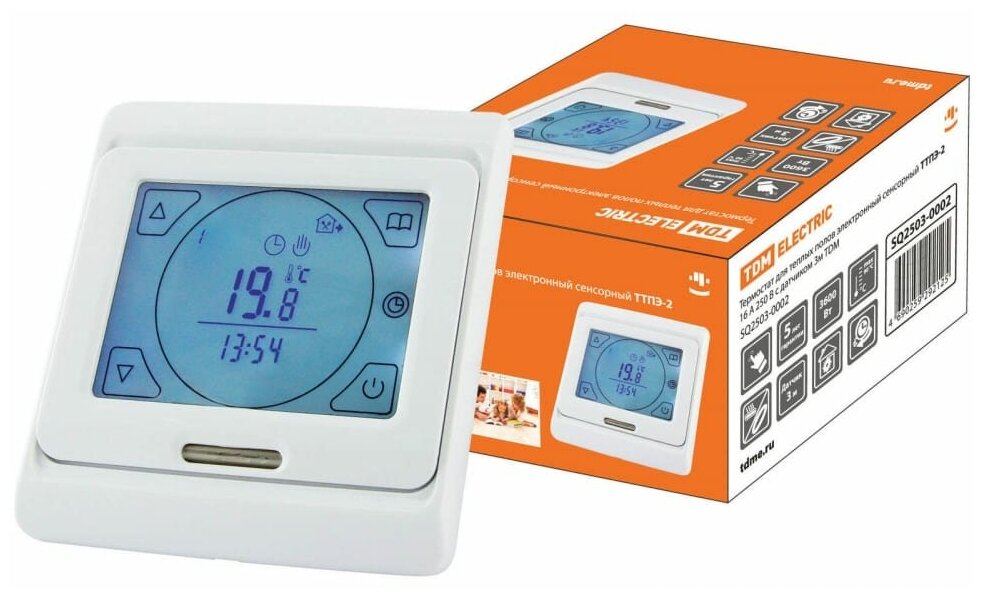 Ниже Вы можете прочитать отзывы на Термостат для теплых полов электронный сенсорный ТТПЭ-2 16А 250В с датчиком 3м TDM SQ2503-0002 (1 шт.), ознакомится с подробными характеристиками, посмотреть интересные обзоры и фотографии на Термостат для теплых полов электронный сенсорный ТТПЭ-2 16А 250В с датчиком 3м TDM SQ2503-0002 (1 шт.).