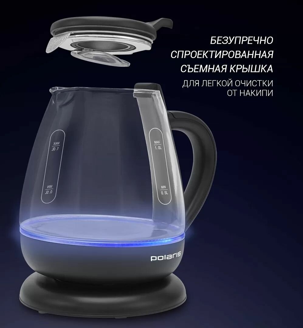 Чайник Polaris PWK 1077CGL, черный/прозрачный