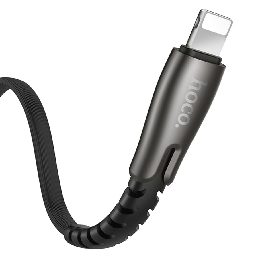 USB-кабель Hoco, AM-8pin Lightning 1.2 метра, 2.4A, плоский, Пвх, чёрный 23753-U58iBK