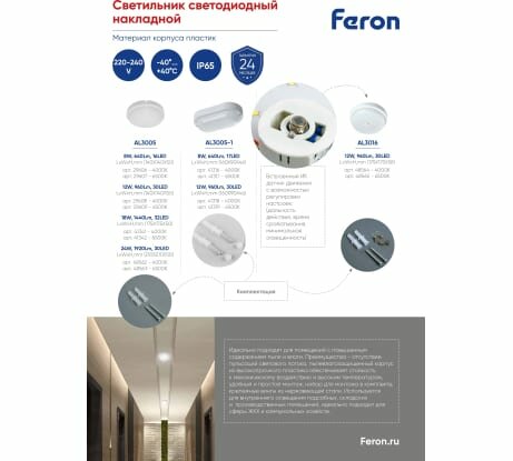 Feron Светильник светодиодный пылевлагозащищённый, 12W, 900Lm, 4500K, в пластиковом корпусе, Ip54, A .