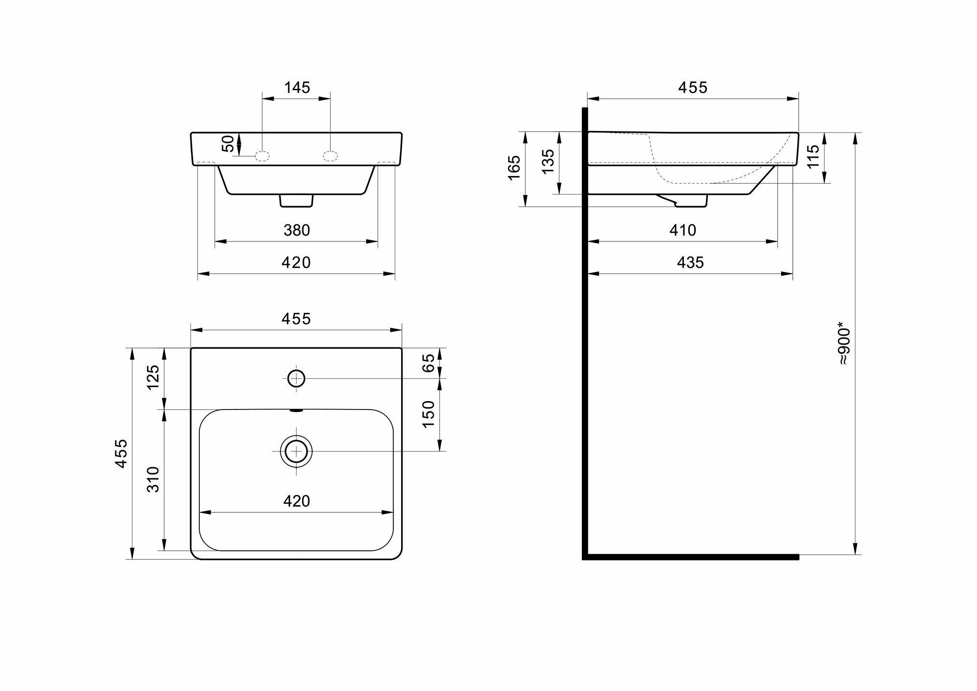 | Расположение отверстия под смеситель | в центре |