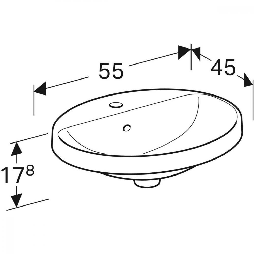 Встраиваемая сверху раковина Geberit VariForm 55х45см, арт. 500.720.01.2, санфарфор, с отв. под смеситель, овальная