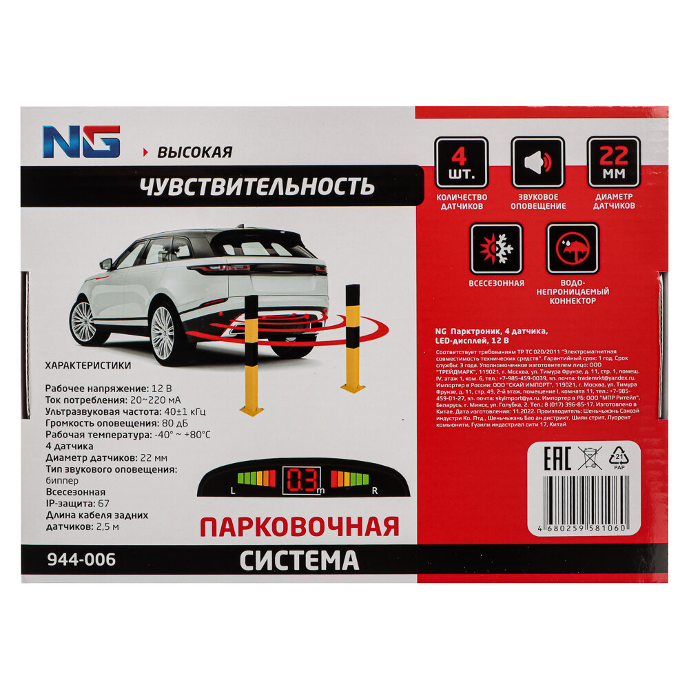 NEW GALAXY Парктроник, 4 датчика, LED-дисплей, 12 В интересное: