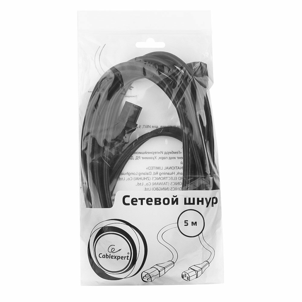 Кабель питания системный блок-монитор Cablexpert PC-189-1-5M, 5 м, C13-C14, 3x1кв.мм., черный, с заземлением