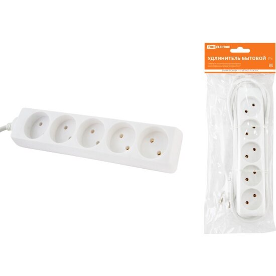 Удлинитель бытовой У5 5 гнезд, 3метра, без заземления, ПВС 2х0,75мм2 10А/250В TDM, цена за 1 шт