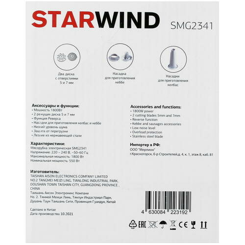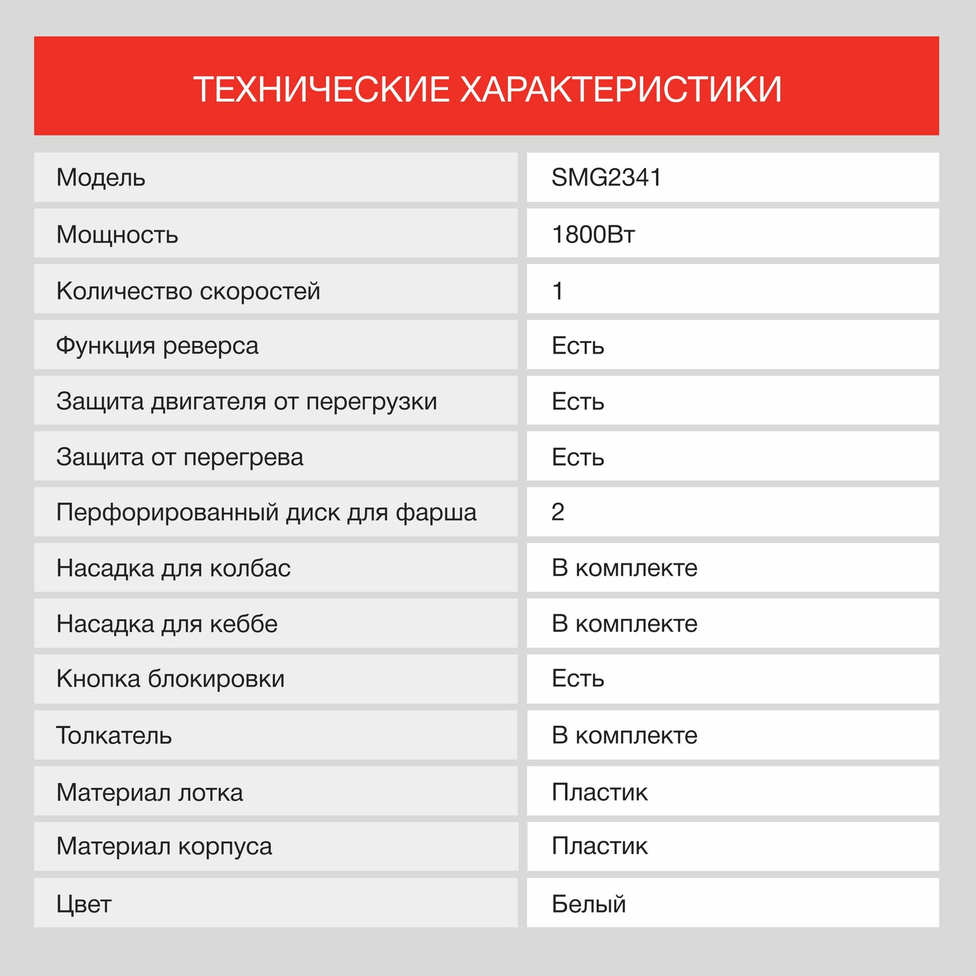 Мясорубка Starwind SMG2341 1800Вт белый SMG2341 .