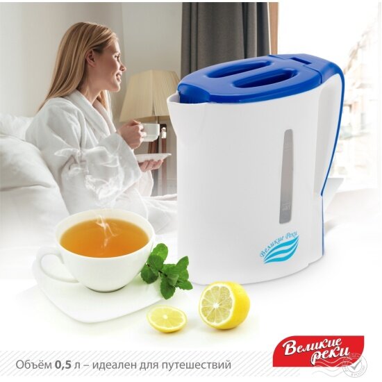 Чайник Великие Реки Мая-1 бело-синий, 0,5 л, пластик, 500 Вт