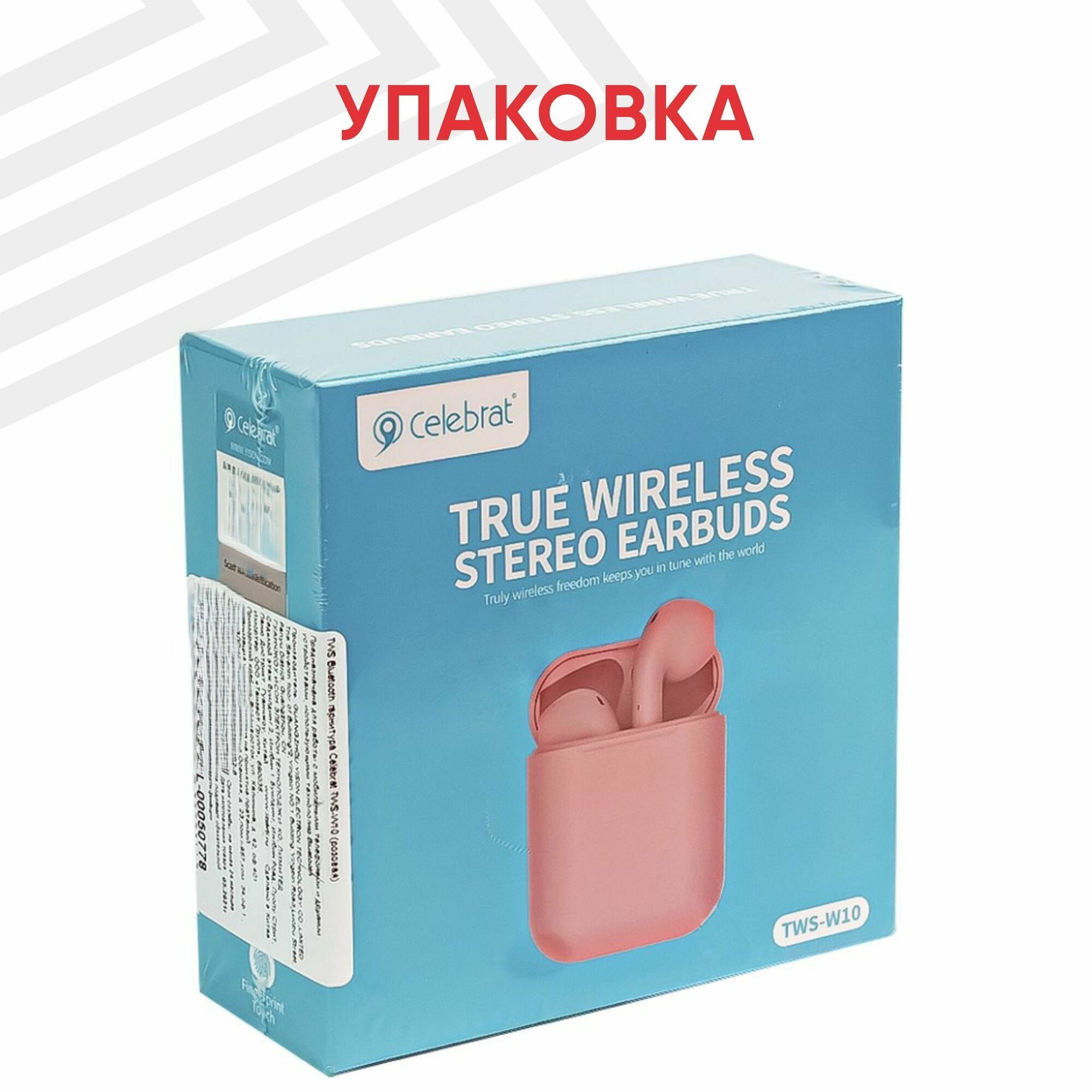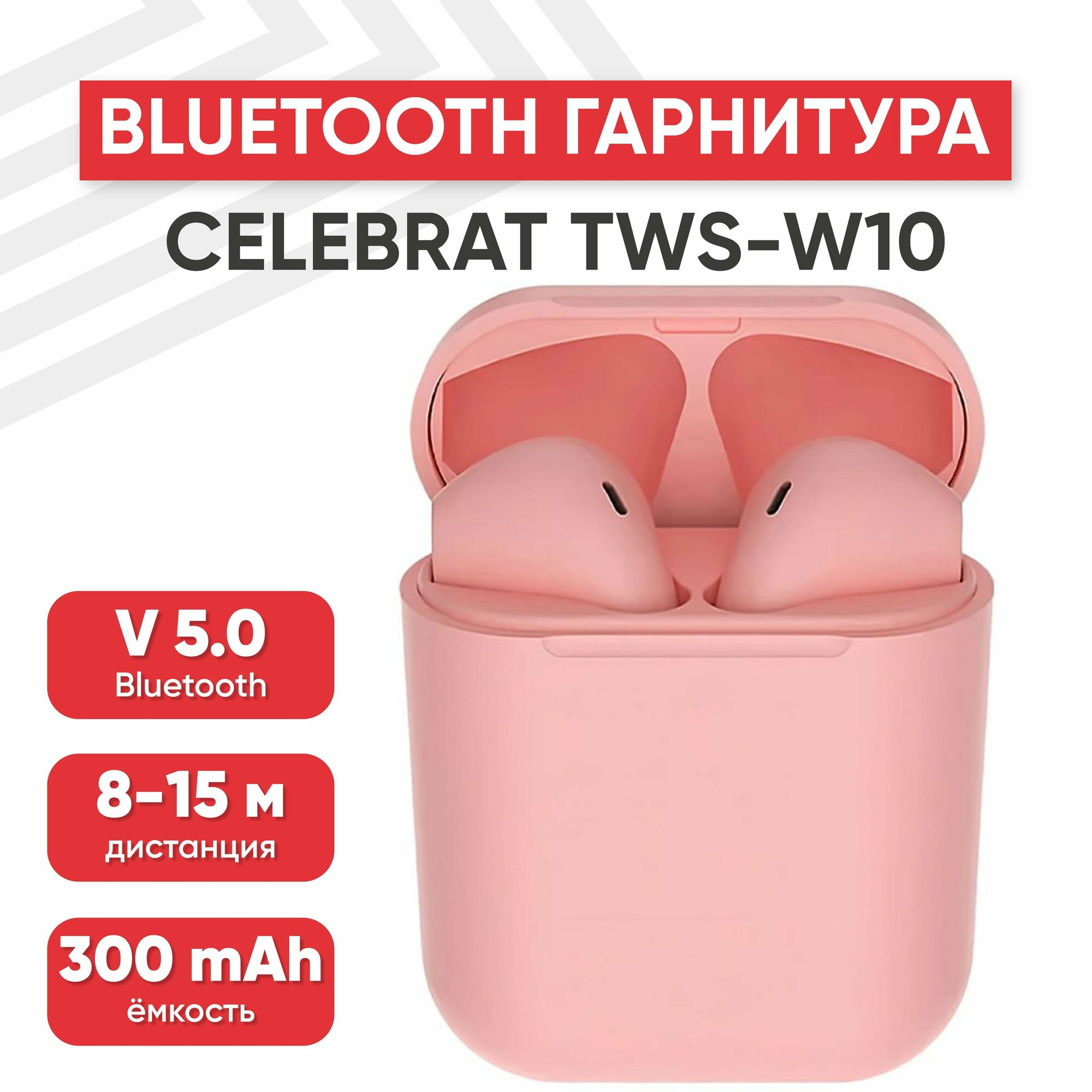 TWS Bluetooth гарнитура Celebrat TWS-W10 (розовая)