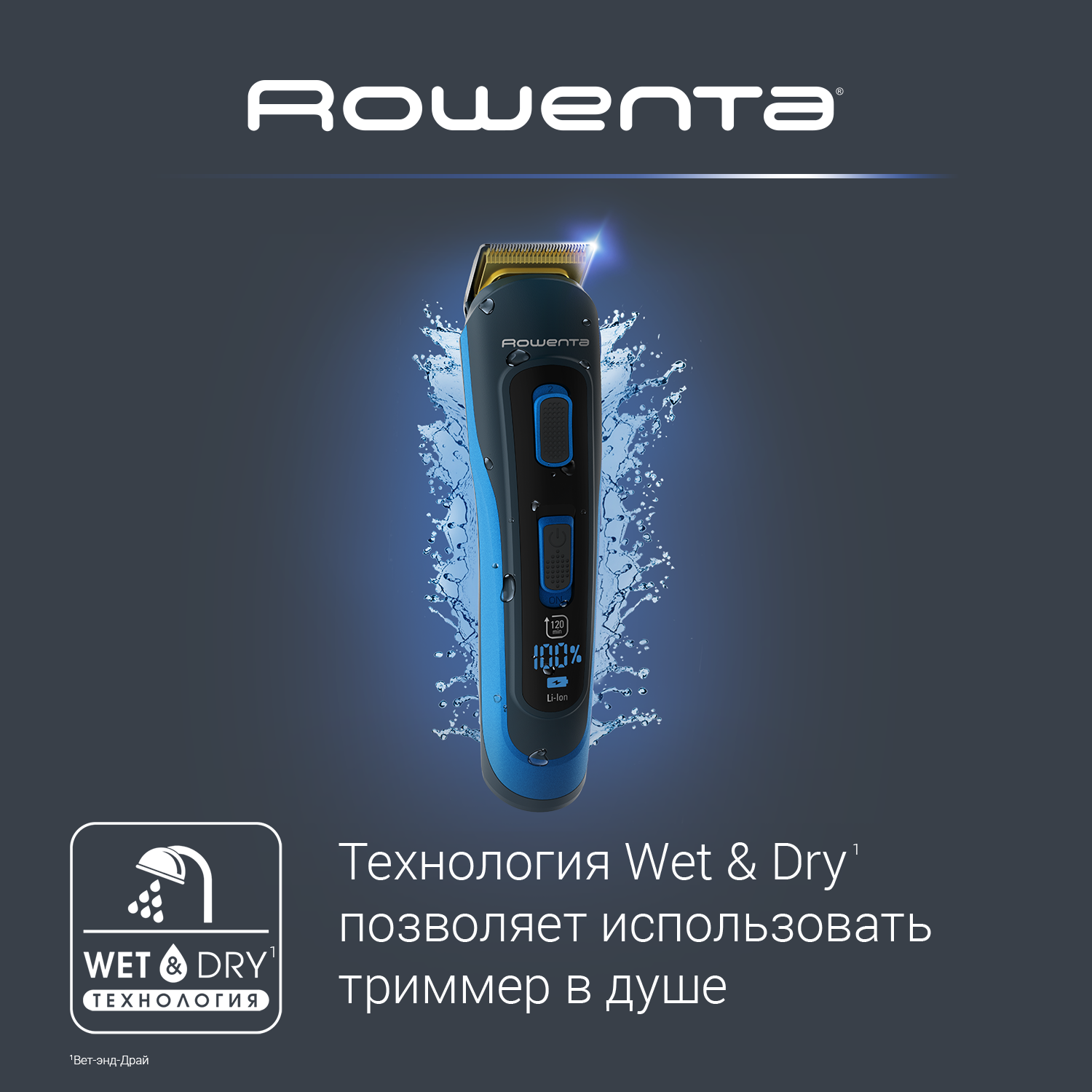 Мультитриммер беспроводной Rowenta TN9461F4, 120 минут автономной работы, водонепроницаемый, 12 в 1