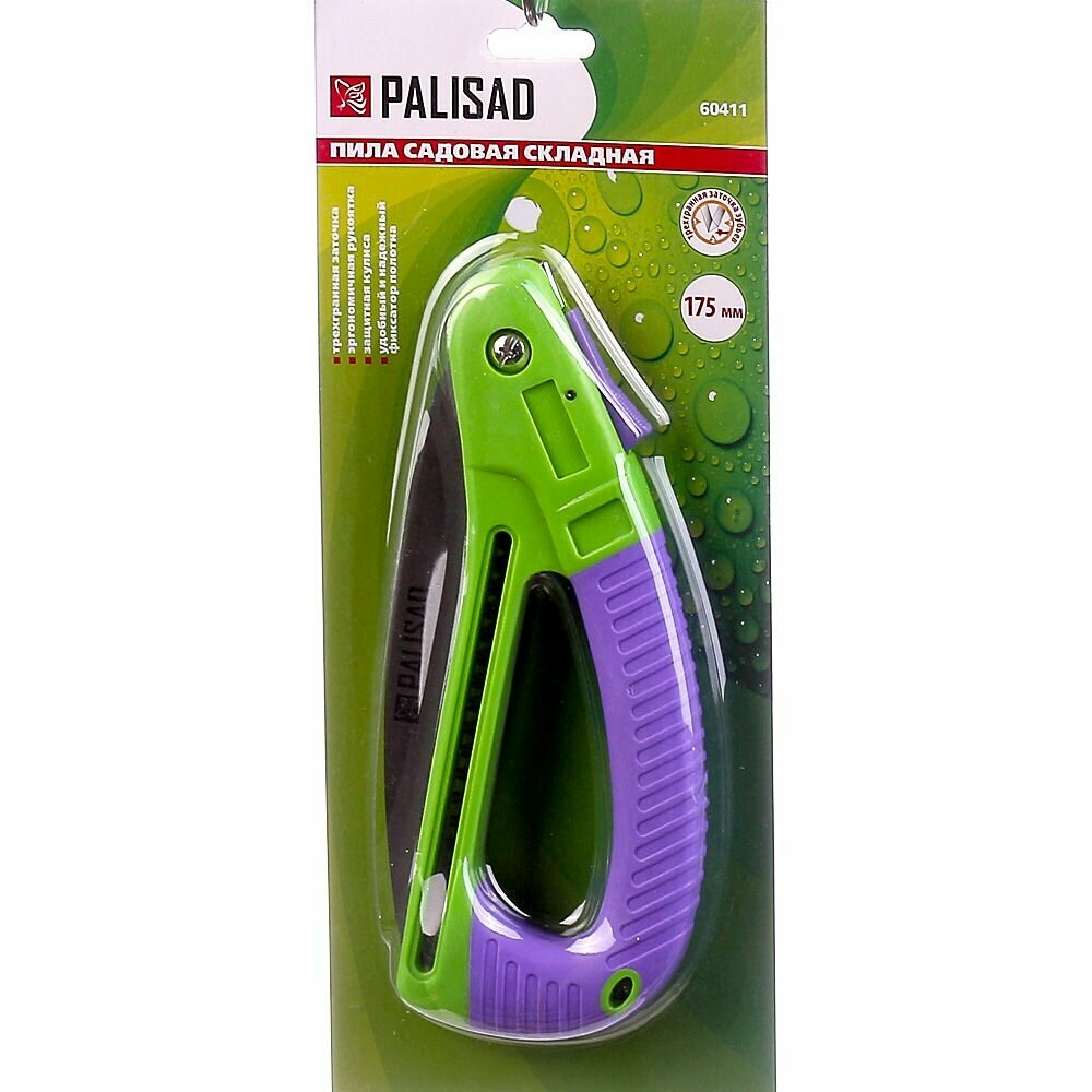 Пила садовая складная Palisad 175 мм, пластиковая обрезиненная рукоятка, защитная кулиса 60411